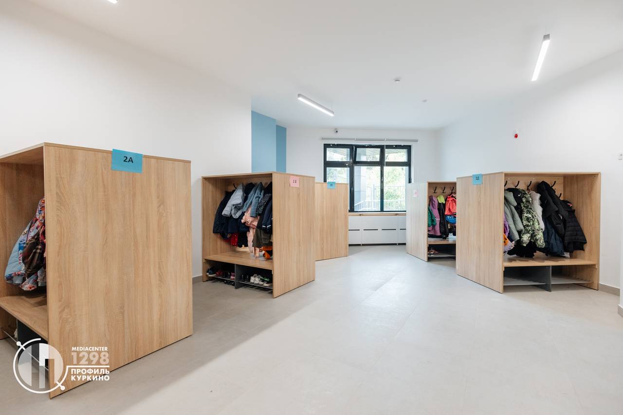 Каждый класс имеет свои места в раздевалке, оборудованные современными шкафчиками для верхней одежды и сменной обуви. Просторные и светлые помещения создают комфортную атмосферу для переодевания и хранения вещей.