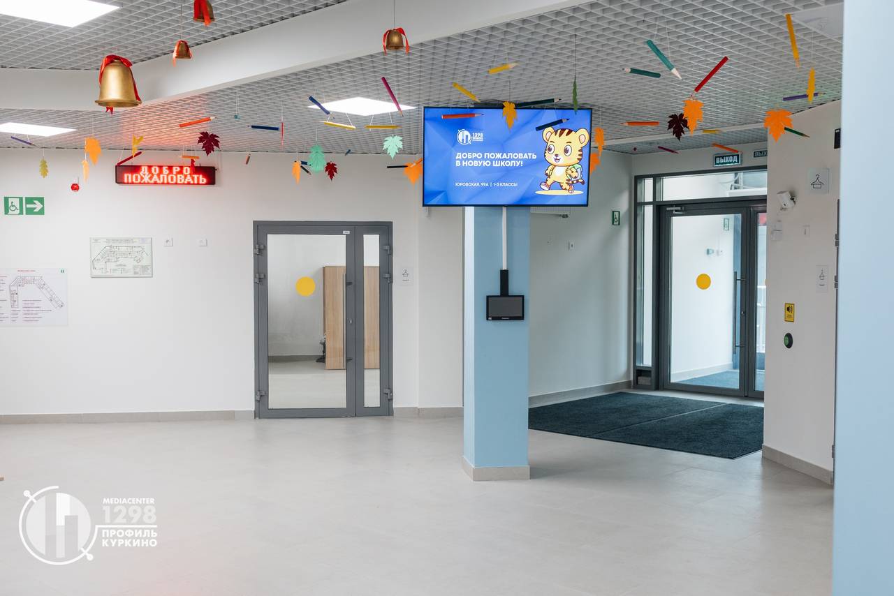 Для удобства ориентирования в новом здании установлены навигационные панели и ТВ-экраны, помогающие проще находить нужные кабинеты и узнавать новости школы.